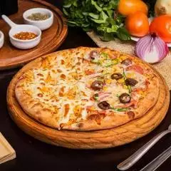 Queijo Muçarela, Presunto, Milho, Calabresa, Azeitona, Cebola, Pimentão e Orégano 8 fatias.