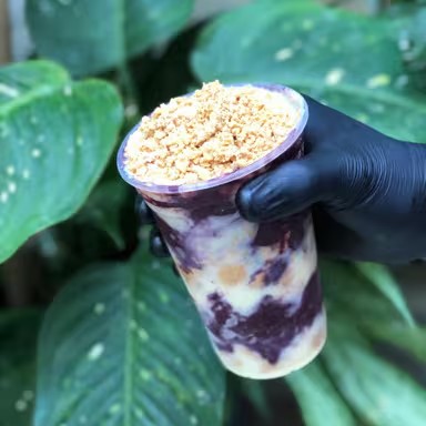 Creme de açaí com direito de +3 acréscimo em camadas totalmente gratis e de sua escolha.