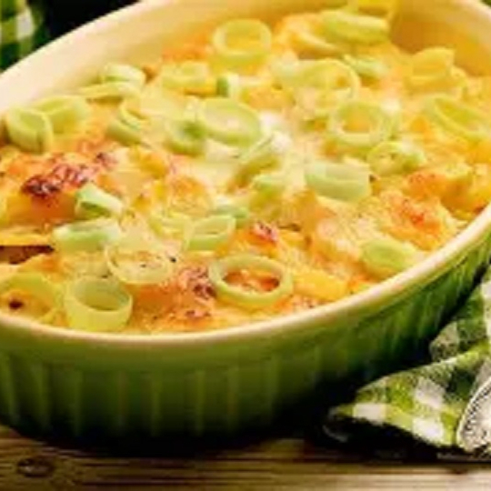 Batata + molho branco com queijo especial + alho poró