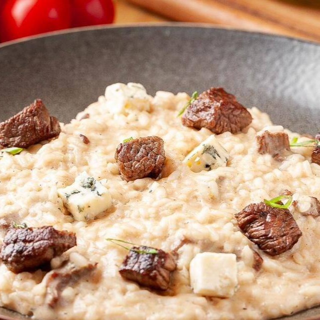 Novidade! Nossa versão deste clássico da cozinha italiana, leva arroz arbóreo, iscas de filé mignon ao molho roti, queijos gorgonzola e parmesão fresco. Finalizado com um fio de mel, para criar uma combinação irresistível de sabores.