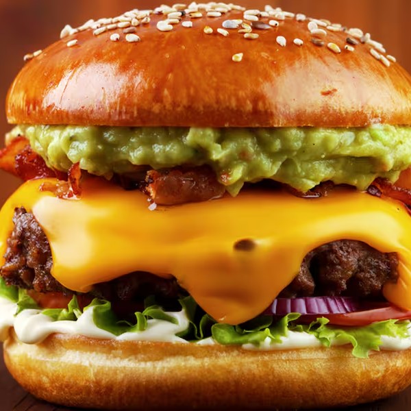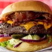 Pão Especial, Carne Picanha 120, Bacon Tostado, Queijo, Cebola, Alface e Tomate.
