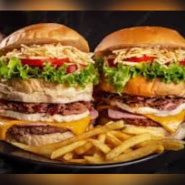 Apresentamos a você o Combo Duplo Dinossauro com Coca-Cola de 2 litros, perfeitamente projetado para servir confortavelmente quatro pessoas. Este prato incrivelmente saboroso e amplo pertence à categoria de 'Hamburgão Gigante de Picanha Maturada'. Consiste em um pão gigante de 22x22cm, abrigando dois hambúrgueres majestosos de picanha de 200g cada, complementados por bacon crocante, calabresa defumada saborosa e frango desfiado suculento. Isso não é tudo, o prato é incrementado com quatro ovos perfeitamente cozidos, quatro fatias de presunto, quatro fatias de queijo, Catupiry cremoso, palmito, champignon, cebola, milho, alface americana hidropônica fresca, tomate Andrea e batata palha crocante. Acompanha ainda pratos e talheres descartáveis, além de uma Coca-Cola refrescante de 2 litros. Este suntuoso banquete leva cerca de 50 minutos para ser preparado. Delicie-se com moderação!