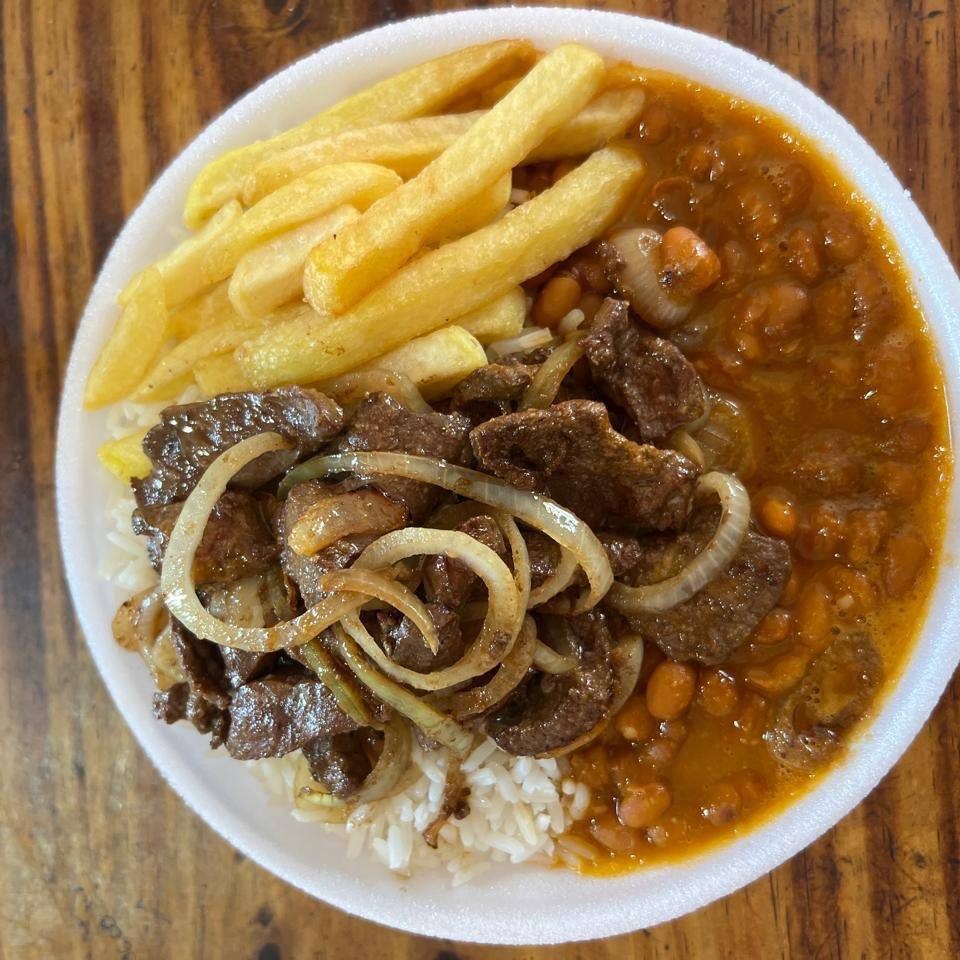 Acompanhamento-Arroz,Feijão,Macarrão alho e oleo ,batata frita,salada do DiaEscolha 2 opção de carne