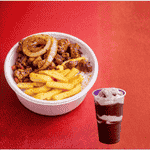 Está incluso: Arroz, feijão, batata frita + porco acebolado picadinho