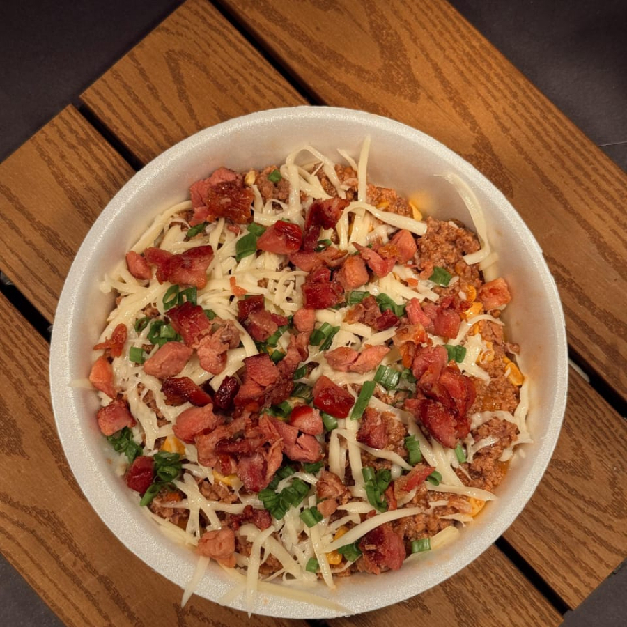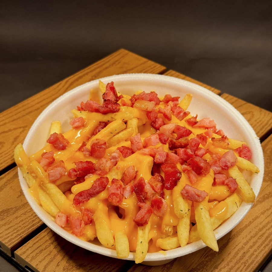 Porçao de fritas com bacon e cheddar