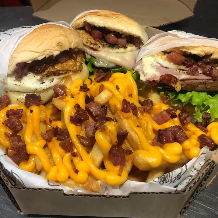 Dois x-egg bacon,nuggets de frango empanado,batata frita c/ cheddar e bacon+ molhos