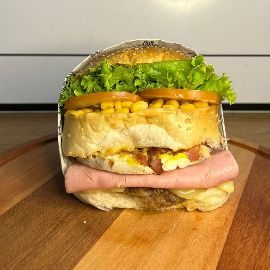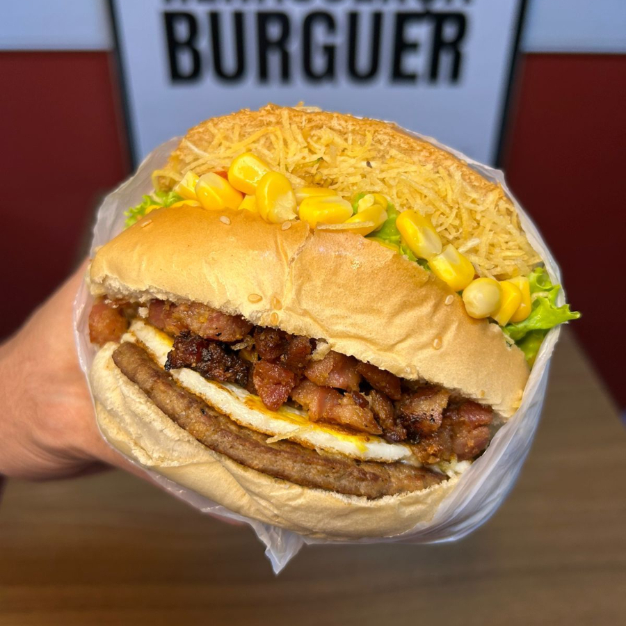 X-Duplo | Explosão de Sabor . Pão Tradicional, 02 Carnes bovina suculenta, bacon crocante, ovo estrelado , queijo mussarela derretido, presunto, batata palha artesanal, milho, alface fresca e tomate. Uma combinação completa, generosa e irresistível, feita para matar a fome de verdade.