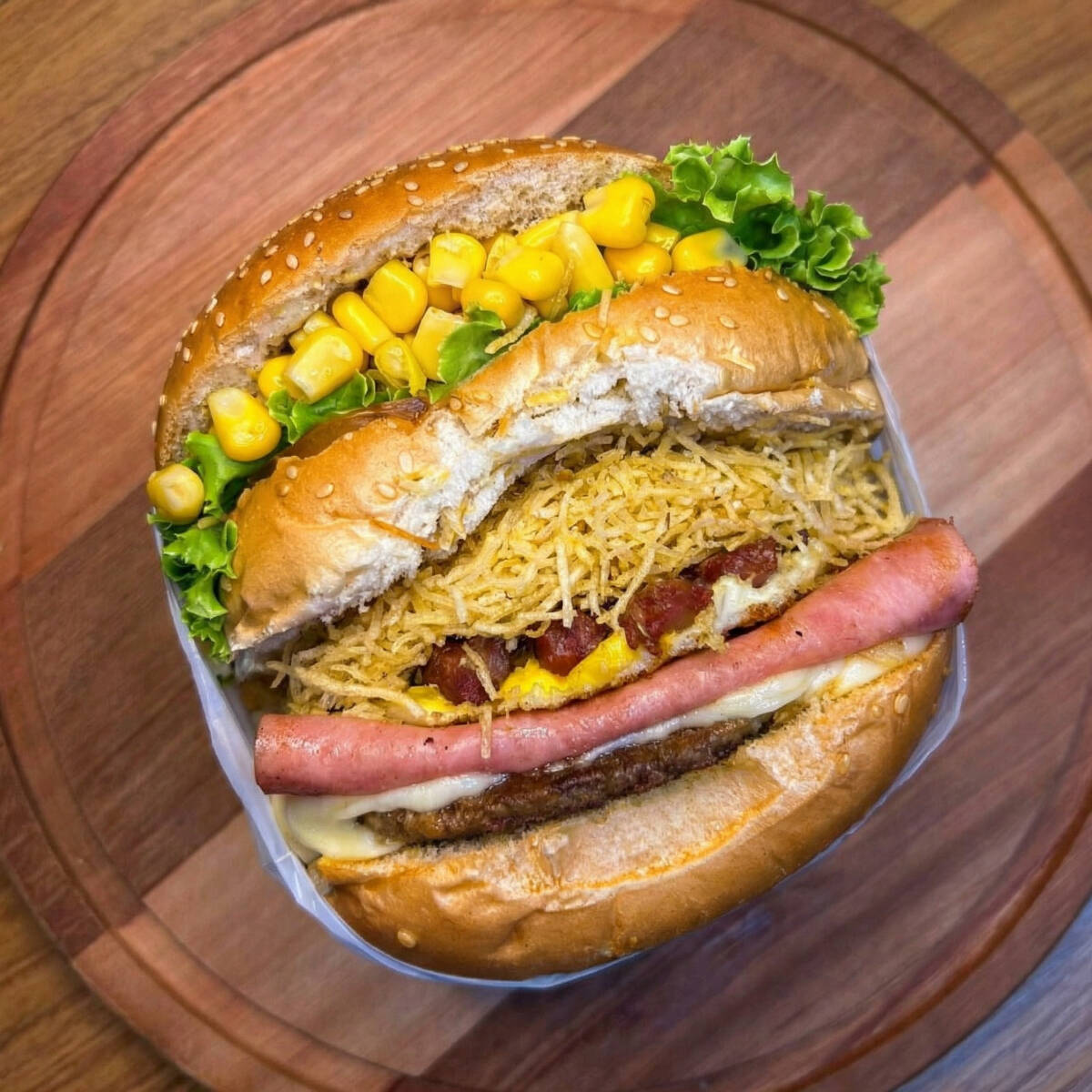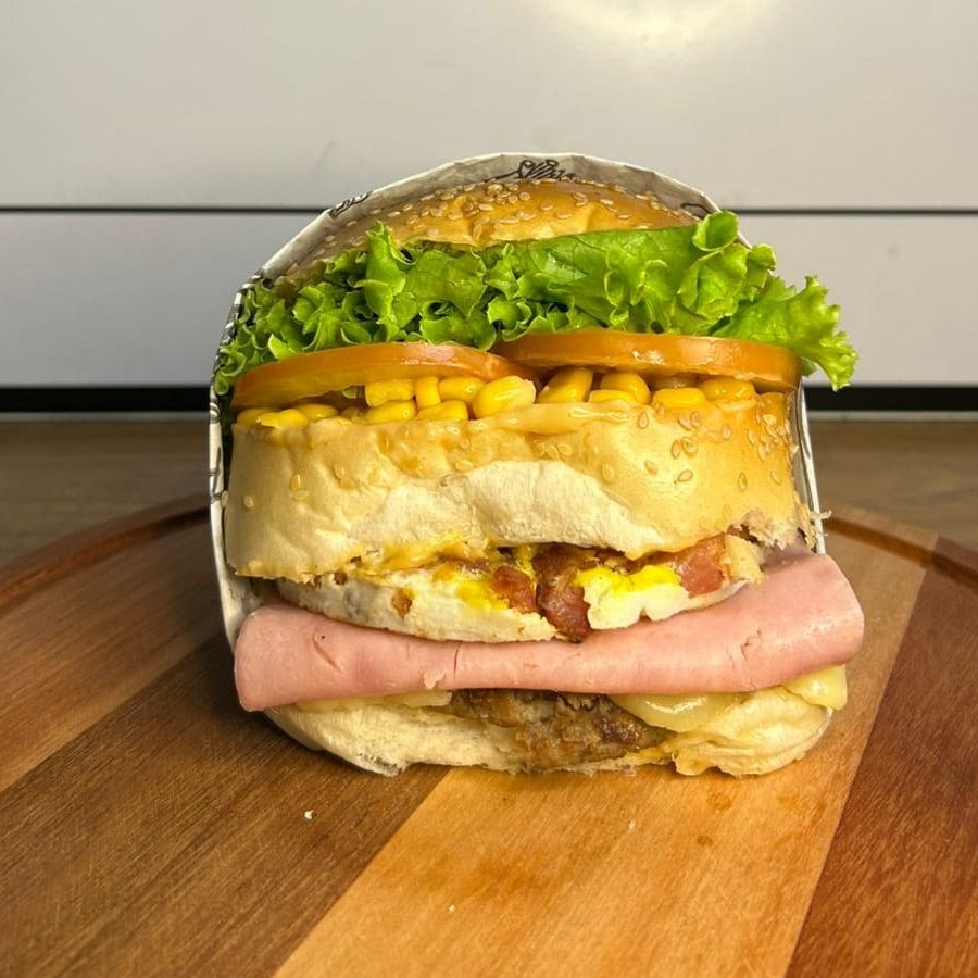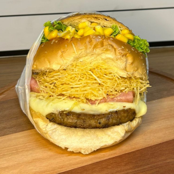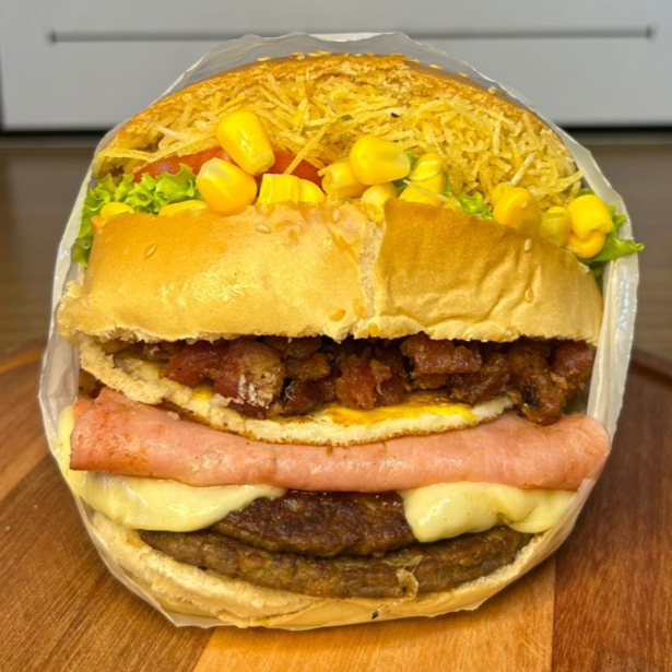 X-Duplo | Explosão de Sabor : Pão Tradicional, 02 Carnes bovina suculenta, bacon crocante, ovo estrelado , queijo mussarela derretido, presunto, batata palha artesanal, milho, alface fresca e tomate. Uma combinação completa, generosa e irresistível, feita para matar a fome de verdade.