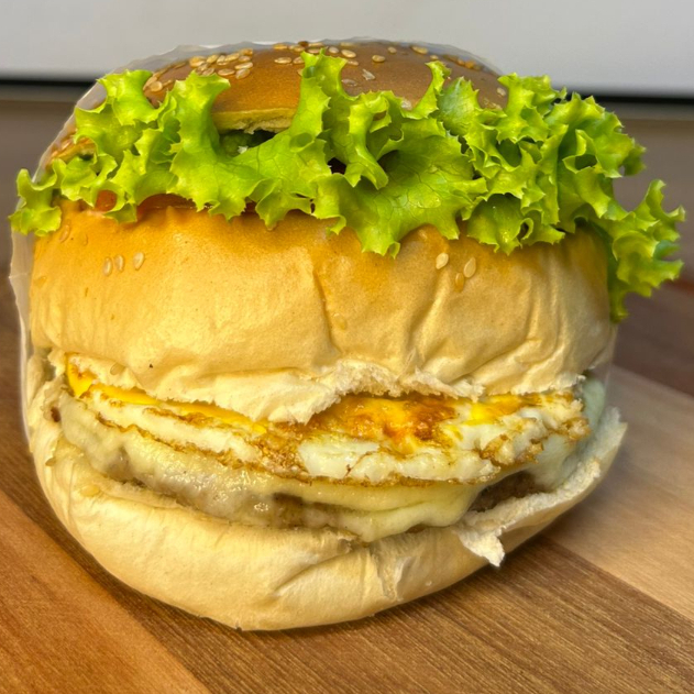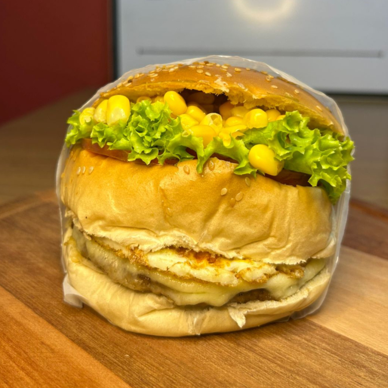 Pão Tradicional, Carne (56g in natura), queijo mussarela ,alface ,tomate, ovo , molho da casa. Acompanha Ketchup & Maionese