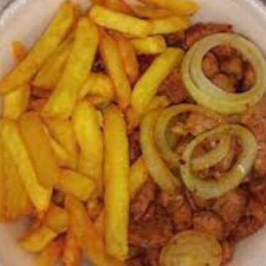500 grs de frango,400 grs de batata regada com mussarela flambada