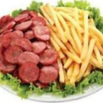 400 grs de calabresa,400 grs de batata regada com mussarela flambada