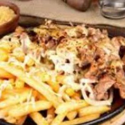 400 grs de carne,400 grs de batata frita regada com muito bacon e cheddar