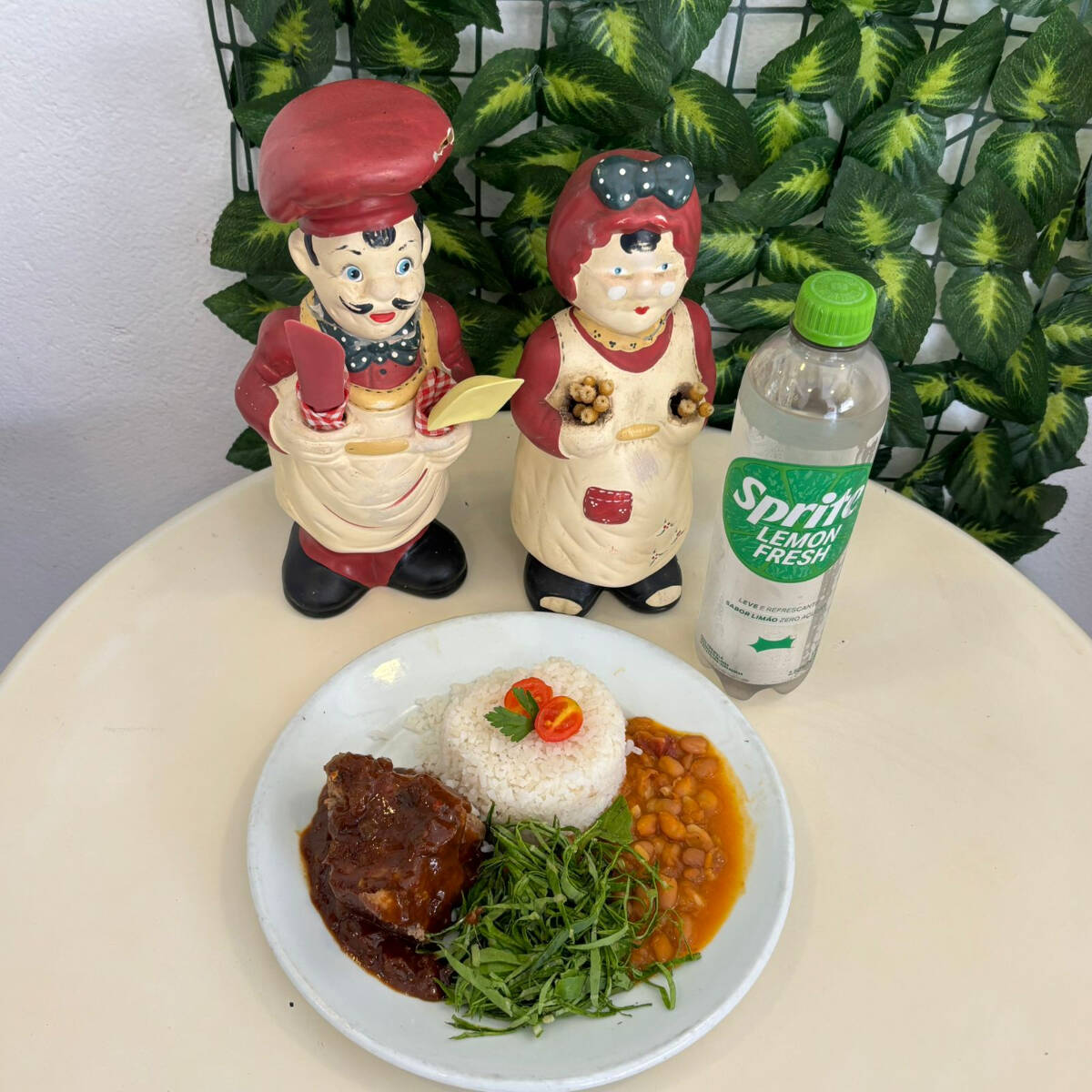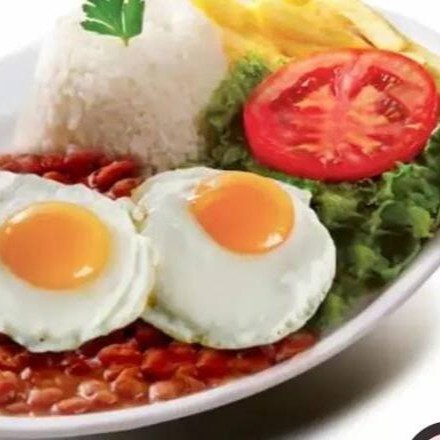 Arroz, branco bem soltinho , feijão , 2 ovos fritos , salada e batata frita