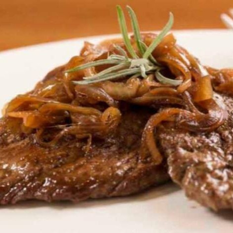 Bife de boi acebolado e bem temperado