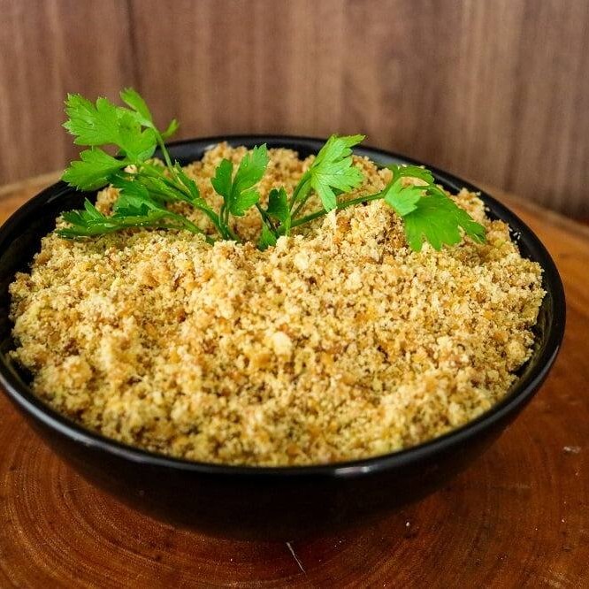 Farinha de madioca, salcinha, cebolinha, bacon, ovo