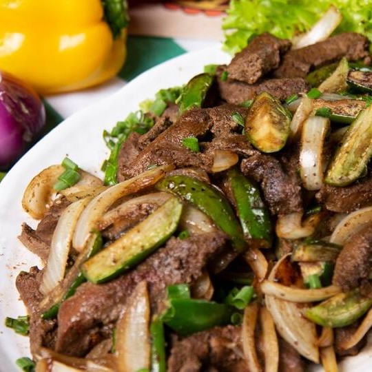 Delicioso bife de figado suculento