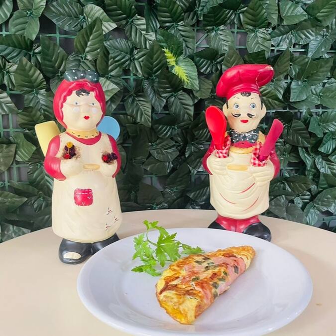 Omelete com 2 ovos presunto e Muçarela, salsinha e cebolinha.