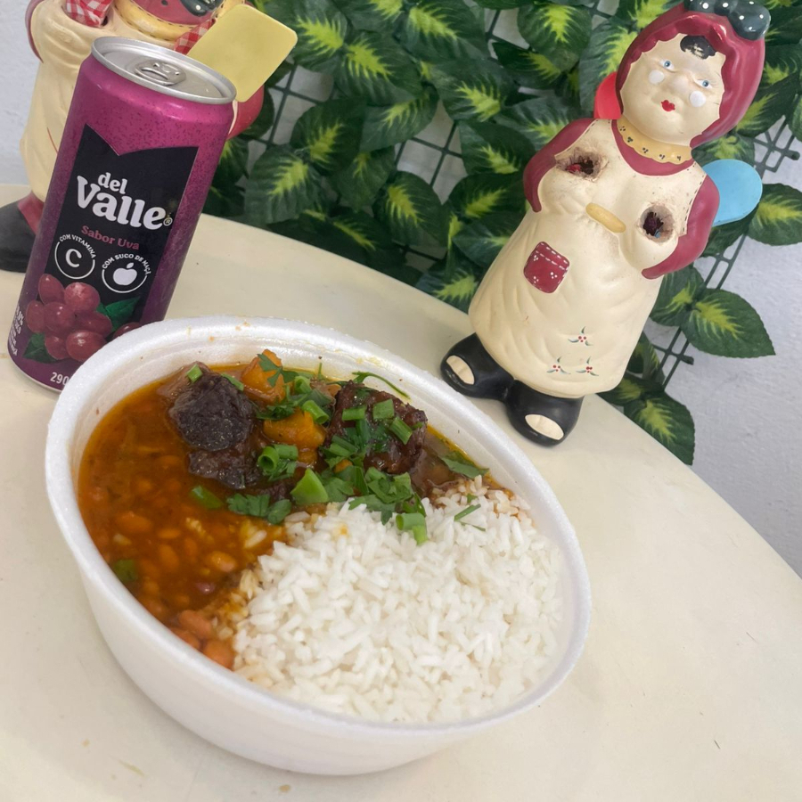 Arroz soltinho, feijão temperadinho e carne cozida com mandioca (obs: não acompanha bebida )