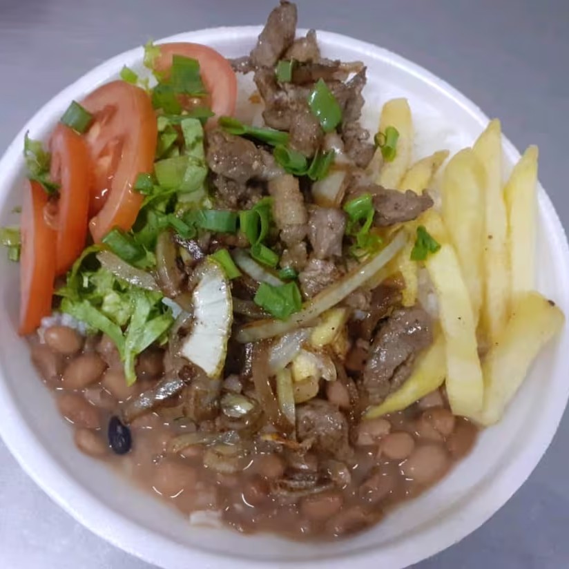 Tropeiro ,arroz , pernil, Bacon,linguiça calabresa, torresmo, couver, ovo,batata frita, cheiro vede