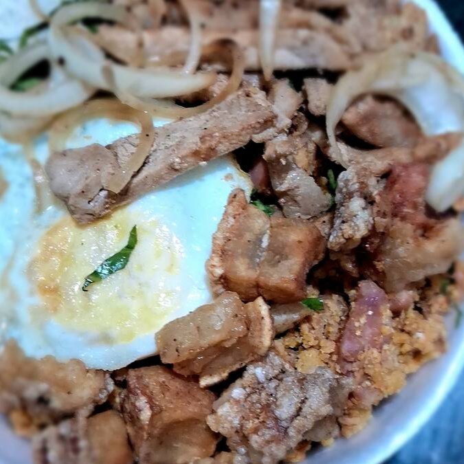 Saboreie nosso delicioso 'Tropeiro Bife Porco', um dos nossos aclamados 'Pratos do Dia'. Este prato é uma combinação perfeita de arroz tropeiro suculento, complementado por um generoso bife de porco tenro e saboroso. Para finalizar, adicionamos crocantes pedaços de torresmo, e uma porção de couve fresca e saudável. Toda essa combinação resulta em uma experiência gastronômica incrível. Não perca a oportunidade de provar esta verdadeira delícia!