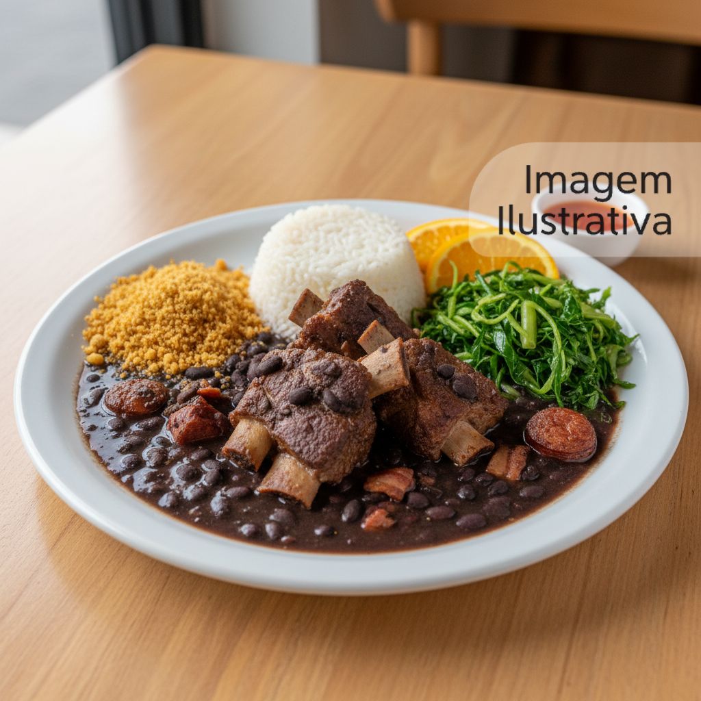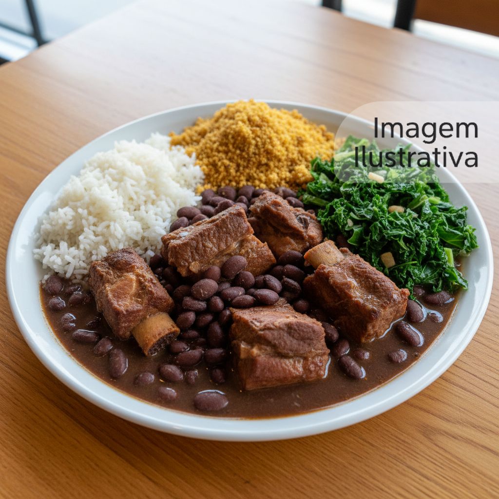 Arroz, feijão tropeiro (feijão, bacon, linguiça e ovos)couve e torresmo.