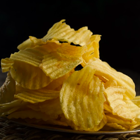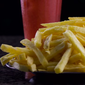 Deliciosa batata frita natural de verdade cortada em formato de chips. Descascada e frita na hora.