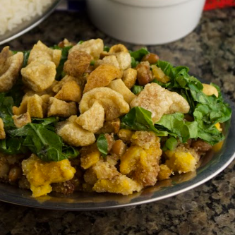 Delicioso feijão tropeiro. Acompanha couve e torresmo.