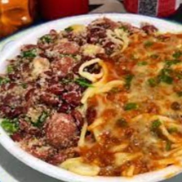 Deliciosa Marmitex de Tropeiro Com espaguete a Bolonhesa Pernil,Frango Assado ou Linguiça conforme disponibilidade Ovo Frito e Fritas.