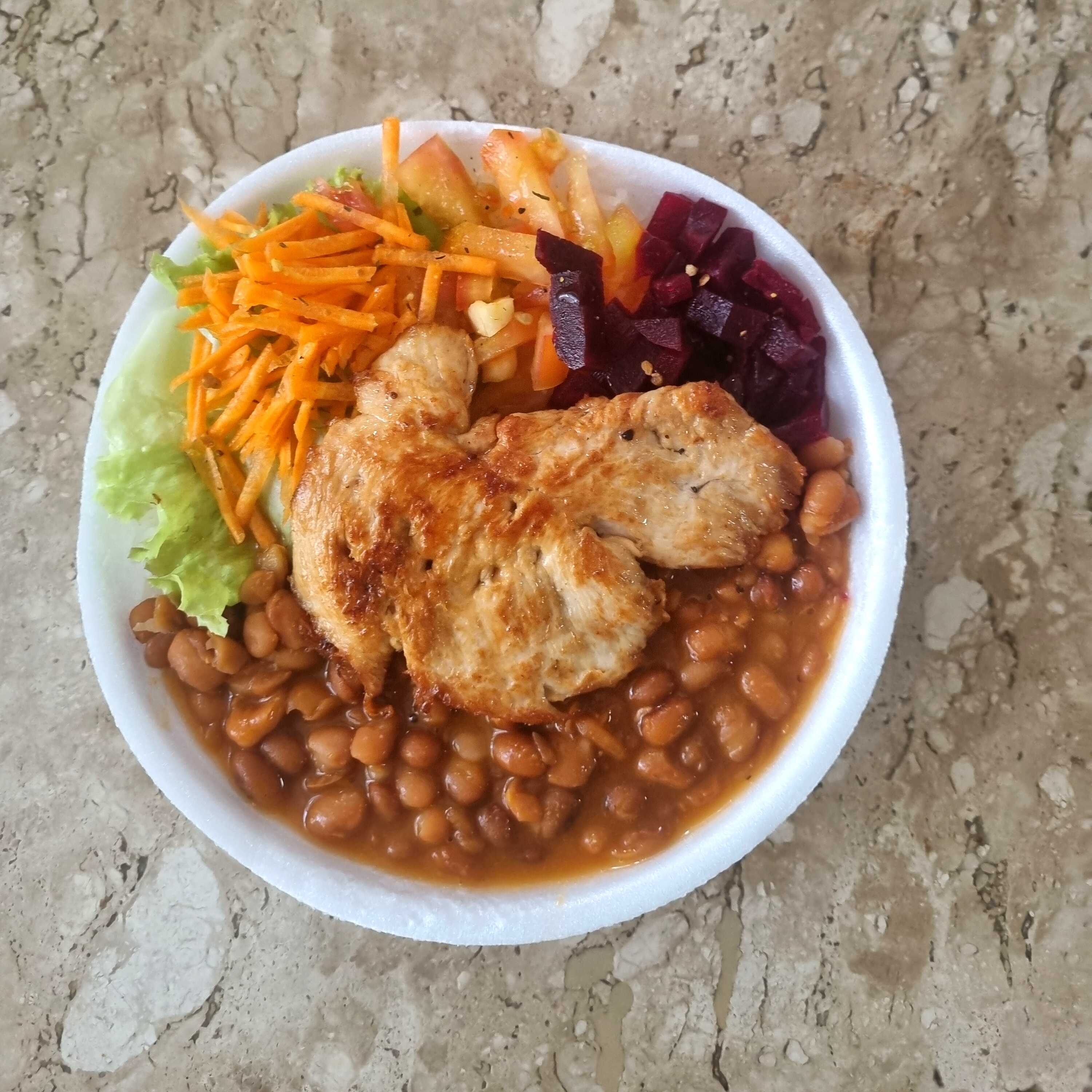 Arroz, feijão, salada (alface, tomate, beterraba )