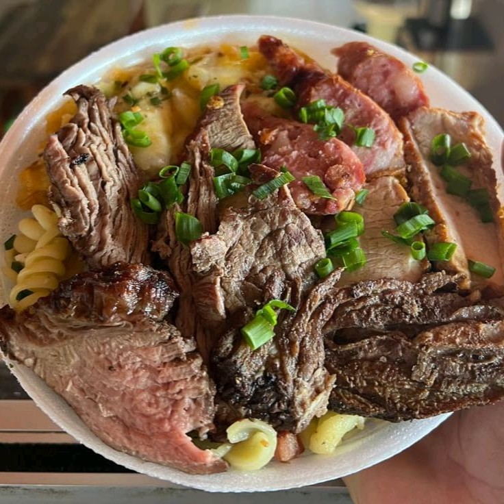 Tropeiro, espaguete com mussarela, torresmo , 1 ,ovo frito, Churrasco misto