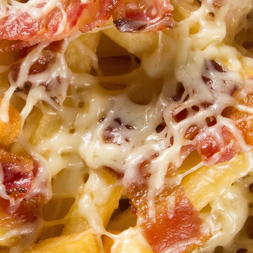 Um delicioso espaguete ao molho com fritas , bacon tudo recheado com mozzarella e bem temperado