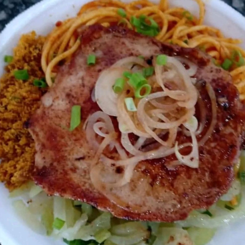 Macarrão feito na chapa com um delicioso tempero da julia , pimentão picadinho cebola picadinha e uma deliciosa linguiça calabresa picadinha, 100gramas de churrasco de pernil e linguiça, e para completar o nosso macarrão uma mozzarella derretida por cima