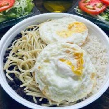 Delicie-se com nosso prato completo: Arroz Soltinho, Feijão, Batata Frita, Macarrão. Acompanhamento: Salada