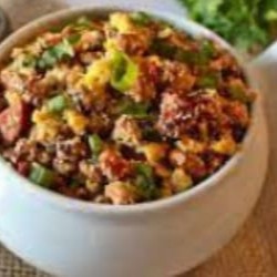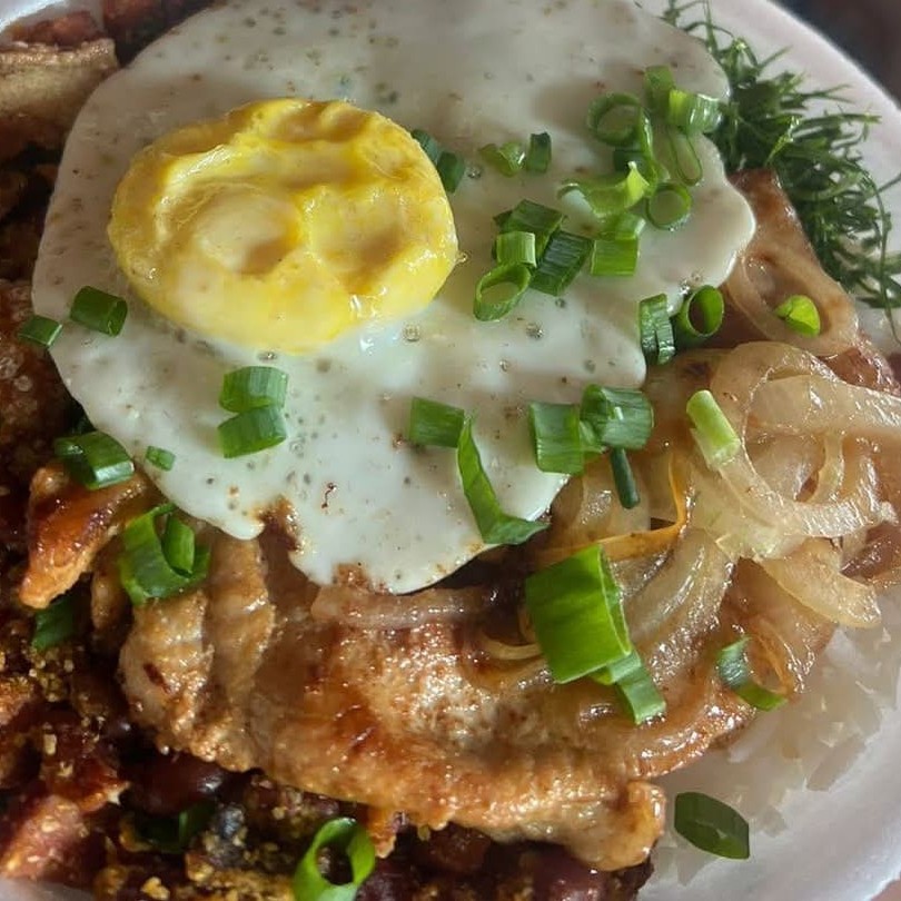 Um delicioso arroz soltinho, tropeiro da julia , couve afogada, torresmo crocante , um suculento bife de porco