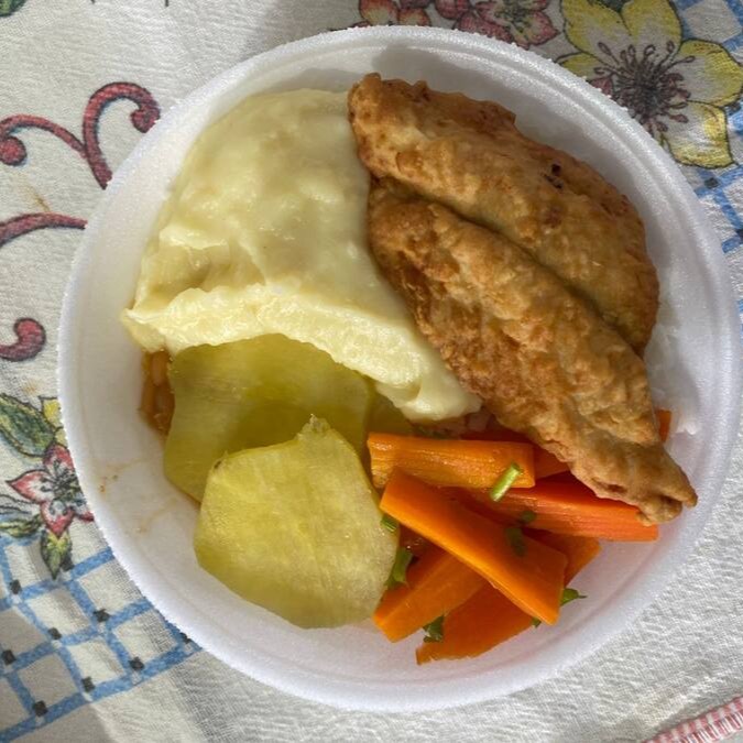Acompanha: Arroz, Feijão, Purê de batata e Legumes.