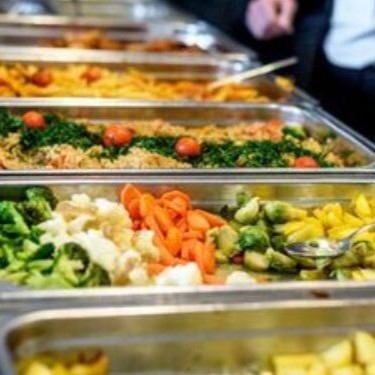 Deliciosa refeição composta com:Carne moída com quiabo,angu, arroz, feijão,moranga e salada do Dia