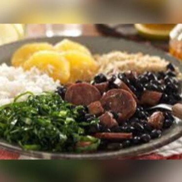 Deliciosa Feijoada, arroz branco,couve, vinagre,farofa e abacaxi ou laranja