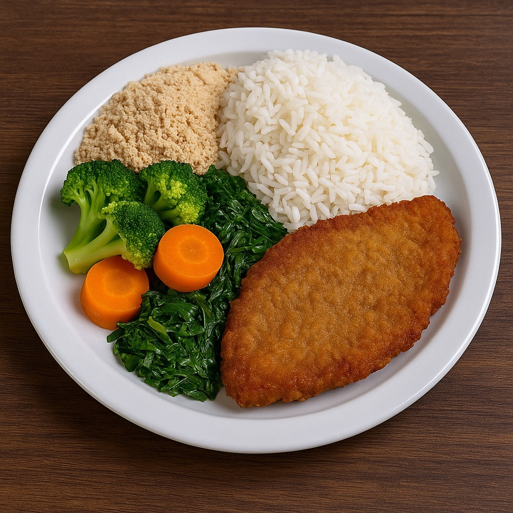 5 guarnições, 2 pedaços de carne ou 1 bife.