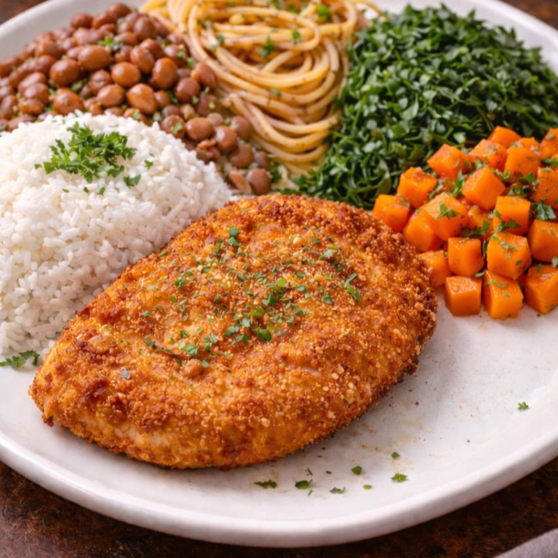 O NOSSO FILÉ DE FRANGO EMPANADO, É NOSSO PRATO MAIS VENDIDO. ESSE DELICIOSO PRATO É ACOMPANHADO DE ARROZ, FEIJÃO, ESPAGUETE, SALADINHA DE COUVE E CENOURA. É A ESCOLHA PREFERIDA DE QUEM BUSCA UMA REFEIÇÃO DELICIOSA E SATISFATÓRIA.