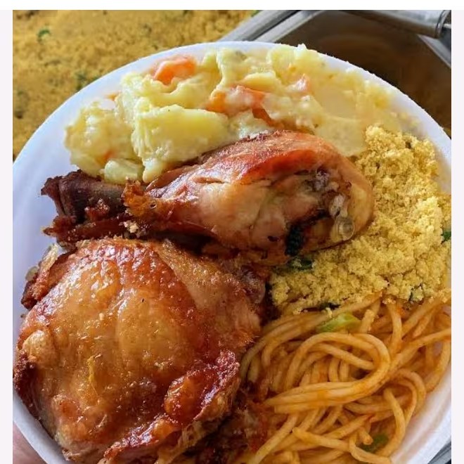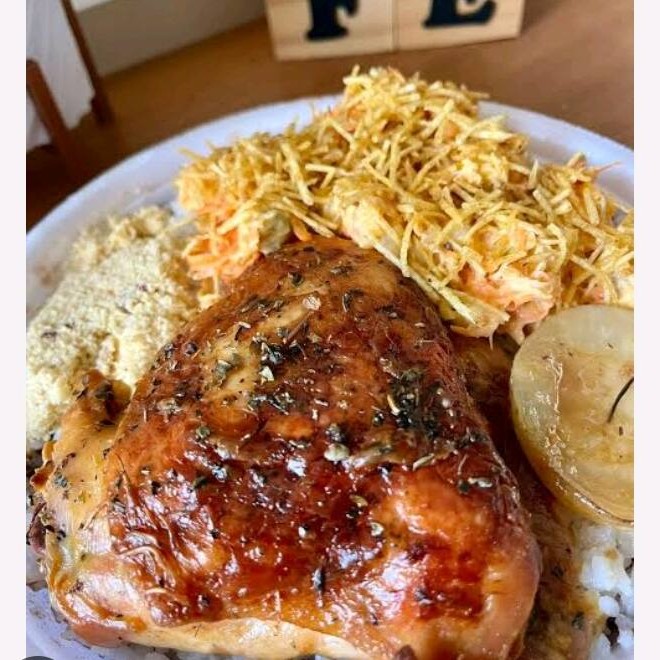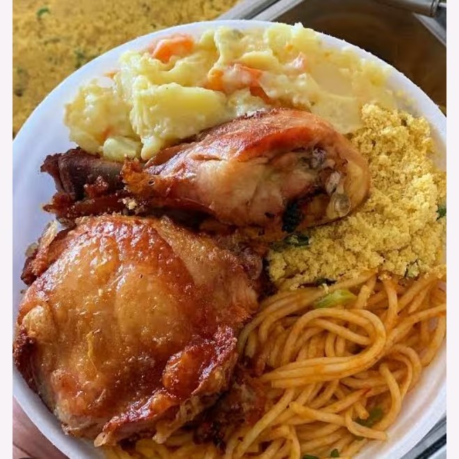 Arroz Branco Soltinho Feijão Caseiro Macarrão Da Casa Farofa Crocante Maionese Frango Assado