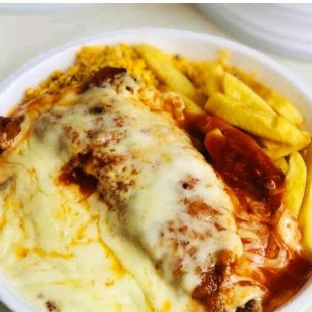 ARROZ BRANCO BATATA FRITA PARMEDIANA DE FRANGO
