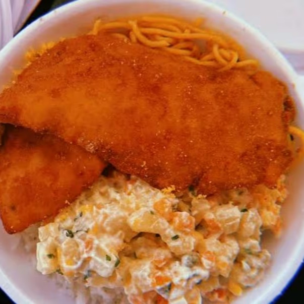 Arroz Branco Feijão Caseiro Macarrão Da Casa Batata frita Bife A Milanesa De Frango