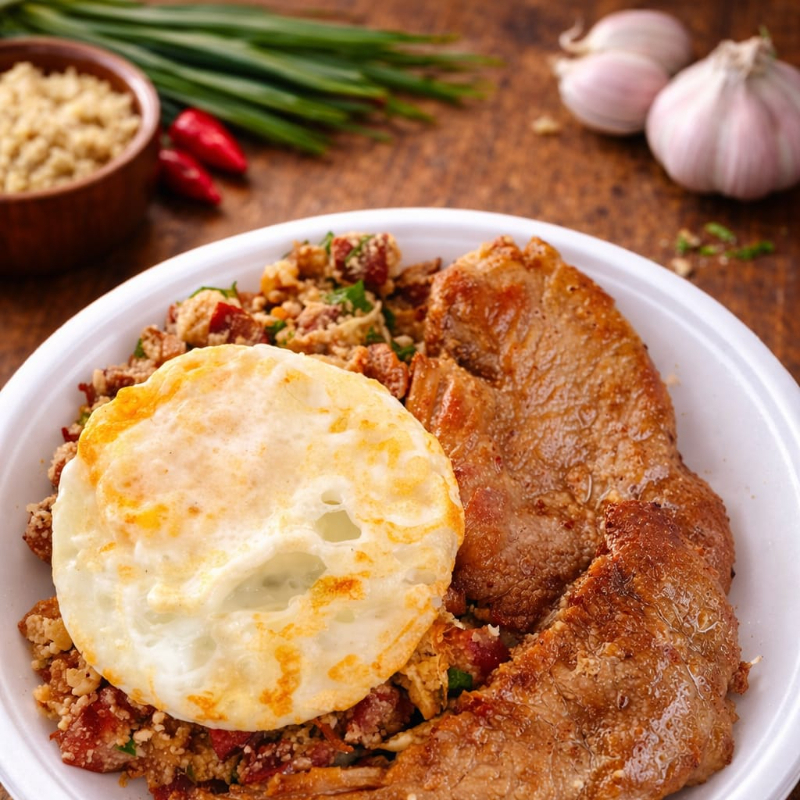 Arroz, Feijão, Macarrão( Quarta-feira Macarrão Alho e Óleo), bife de Porco e salada do dia.