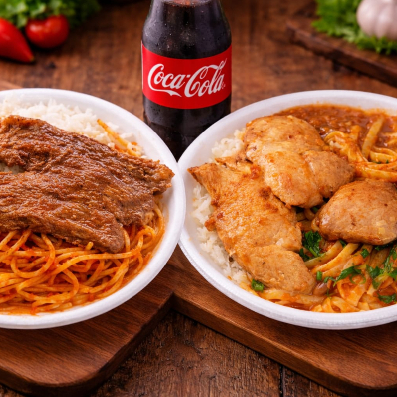 1 marmita de bife de boi + 1 marmita de bife de frango + Coca-Cola 600ml 💰 De R$ 69,80 por apenas R$ 59,90 😱 👉 Serve muito bem 2 pessoas! 👉 Comida caseira, bem servida e sabor de verdade! 🚨 Aproveite enquanto dura!