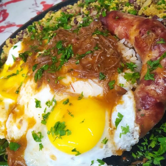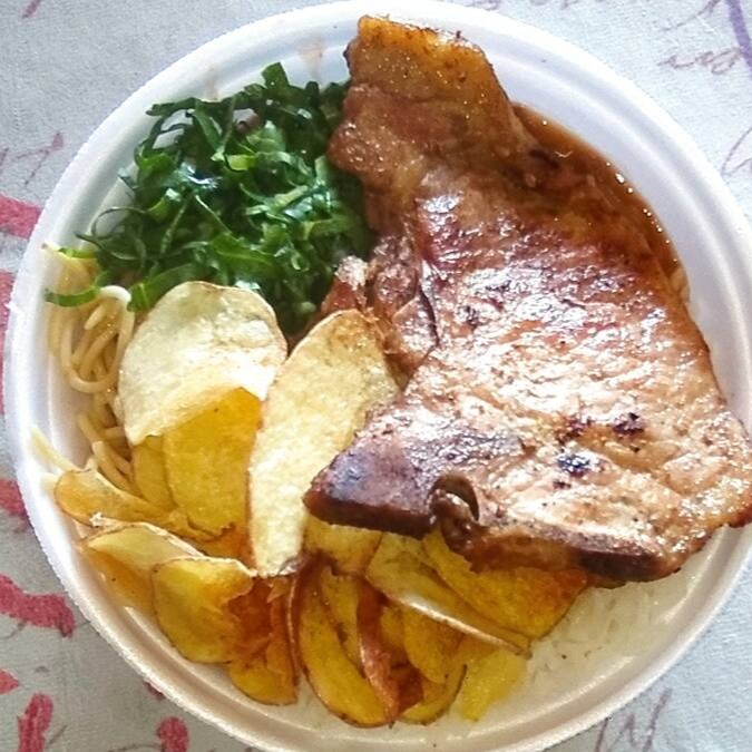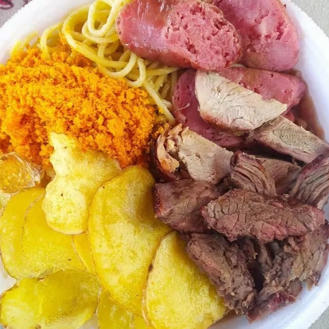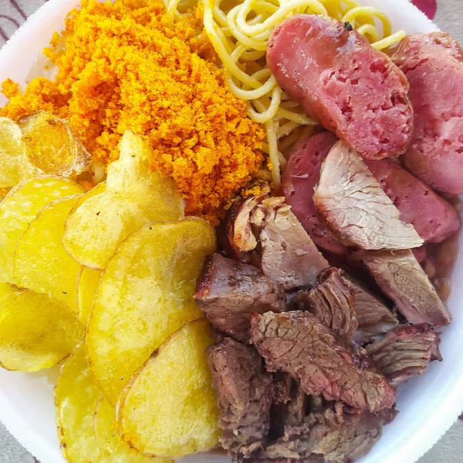 Experimente nosso 'Almoço com Churrasco', uma deliciosa combinação de churrasco misto, repleto de suculência e sabor. Acompanha arroz primorosamente temperado, feijão que traz um toque caseiro, farofa crocante e macarrão ao alho e óleo, que traz a simplicidade com um sabor incomparável. Também inclui a nossa 'Salada do Dia', sempre fresca e variada. Para completar, um refrescante refrigerante de 200ml. Tudo isso dentro de um combo especial da Coca-Cola. Uma refeição completa e equilibrada para satisfazer seu apetite!