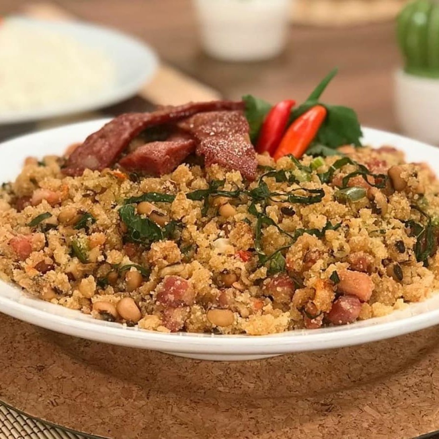 Acompanhamentos Arroz, Tropeiro, Macarrão, Batata Frita, Salada com Costelinha.