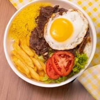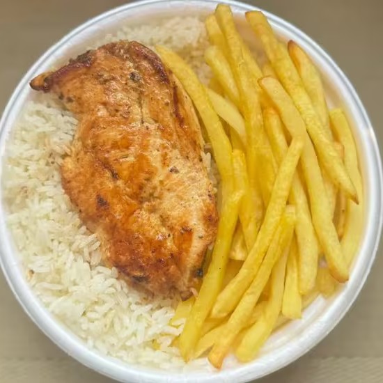 Arroz, Feijão, Macarrão, Batata Frita, Salada, Bife de Frango.
