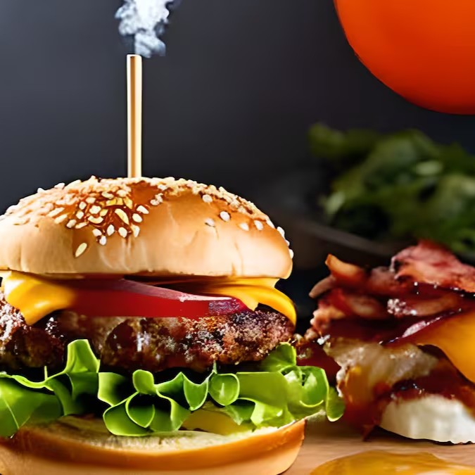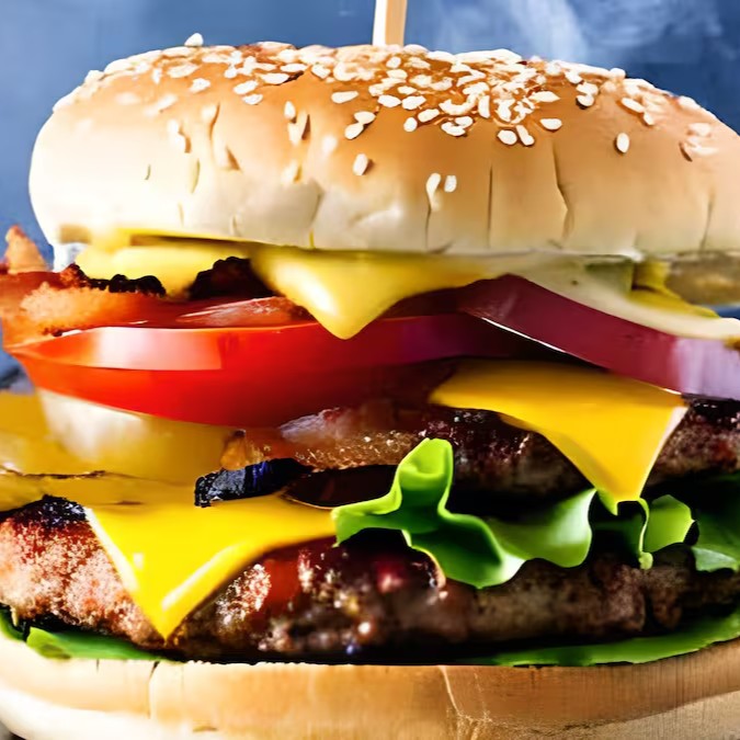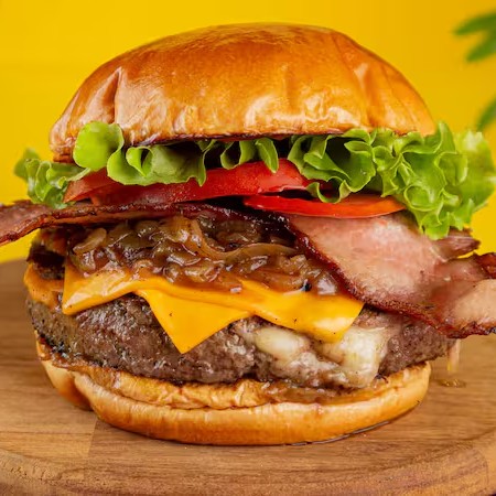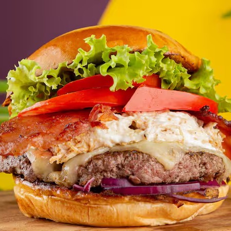 Pão macio recheado com suculento hambúrguer de 90g, fatias de bacon crocante, queijo derretido, presunto saboroso, ovo frito na chapa, batata palha crocante e nosso molho especial da casa. Finalizado com alface fresca e tomate selecionado para equilibrar sabor e textura. Uma explosão de sabores em cada mordida!