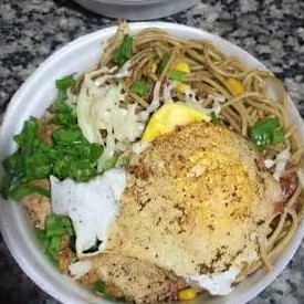 Espaguete, Bacon, Calabresa, Frango Desfiado, Cebola, Tomate ,Milho ,Mussarela, Shoyo e Cebolinha.