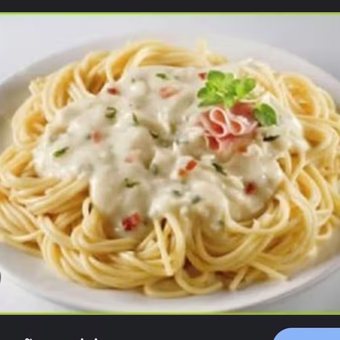 Espaguete, Molho Branco, Ervilha , Mussarela e Orégano.